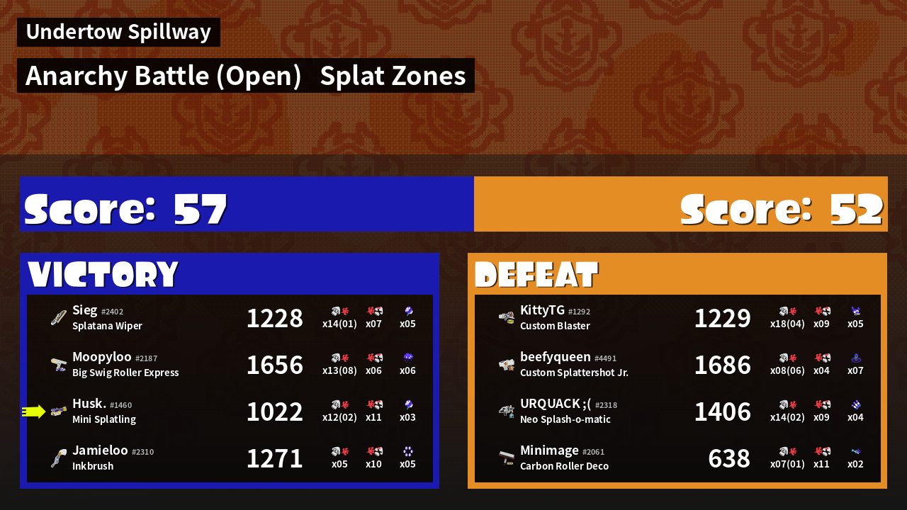 | Mode | Splat Zones - Anarchy Battle (Open) | ||