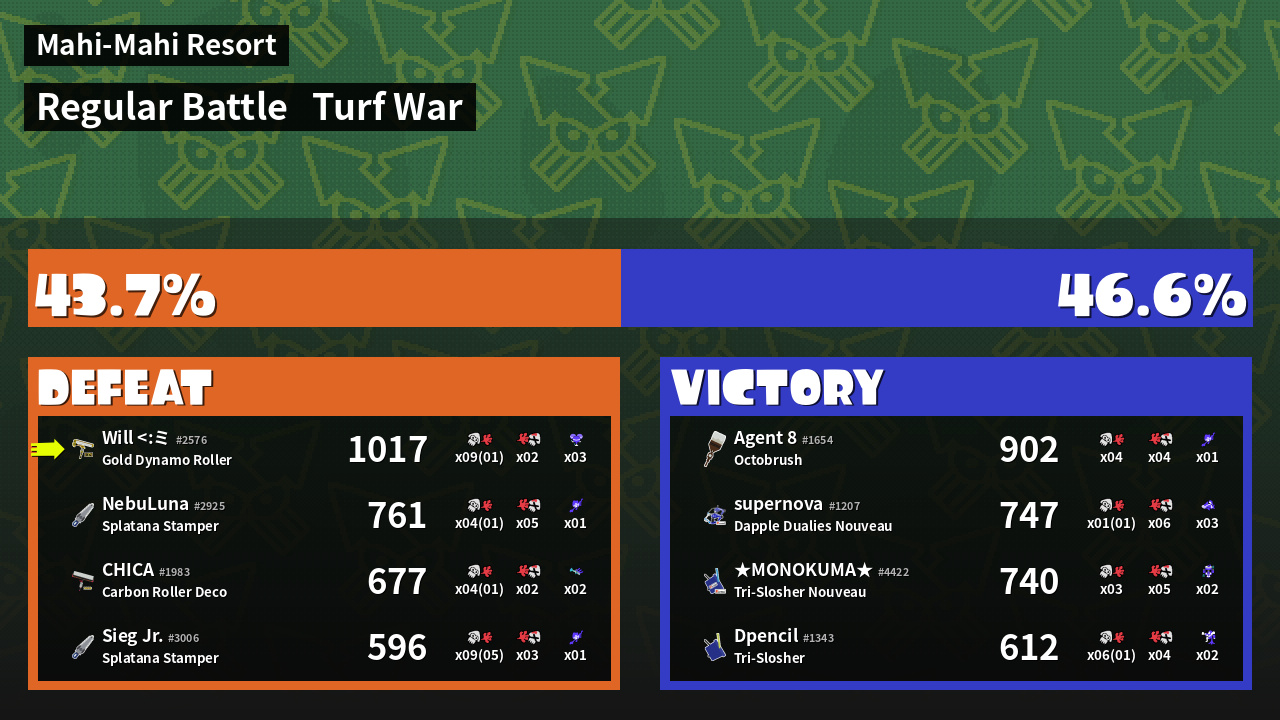 | Mode | Turf War - Regular Battle | ||
