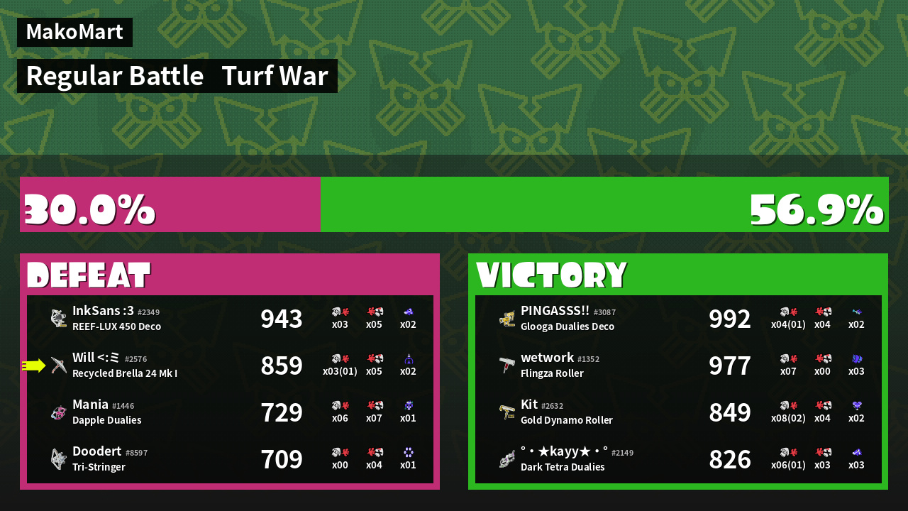 | Mode | Turf War - Regular Battle | ||
