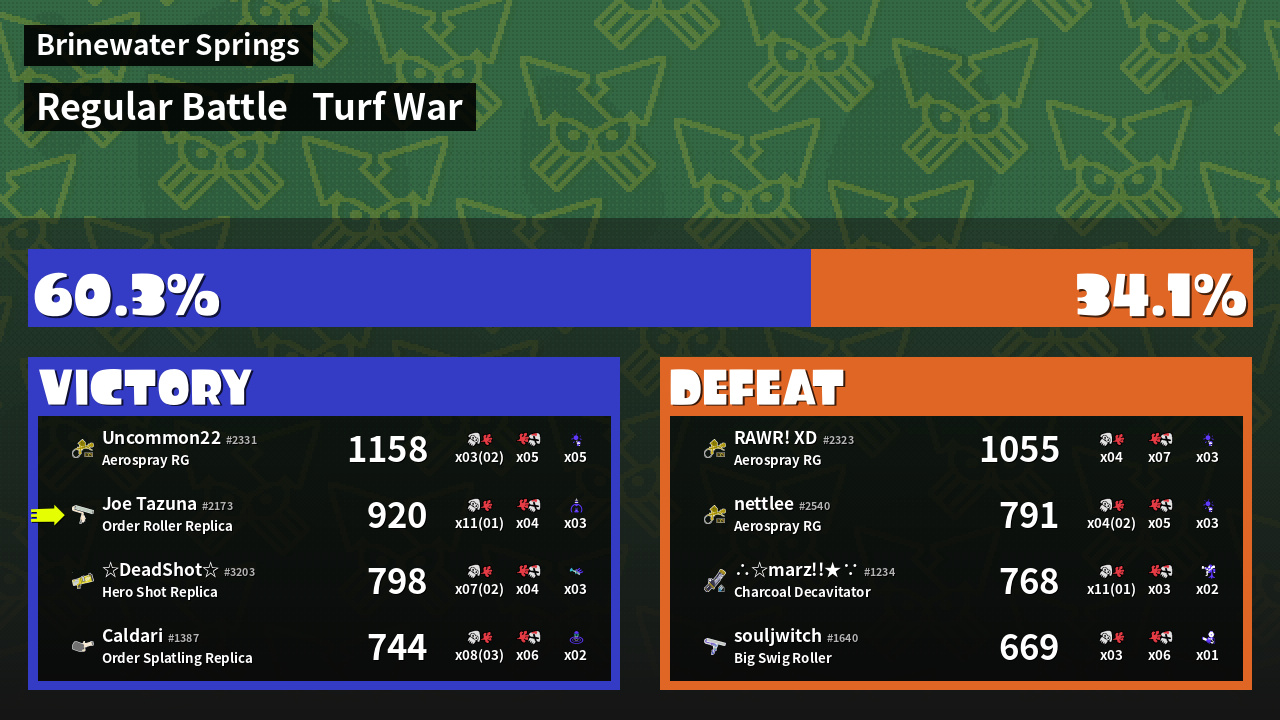 | Medals | #1 Overall Splatter #1 Home-Base Inker #1 Enemy Splatter | ||
