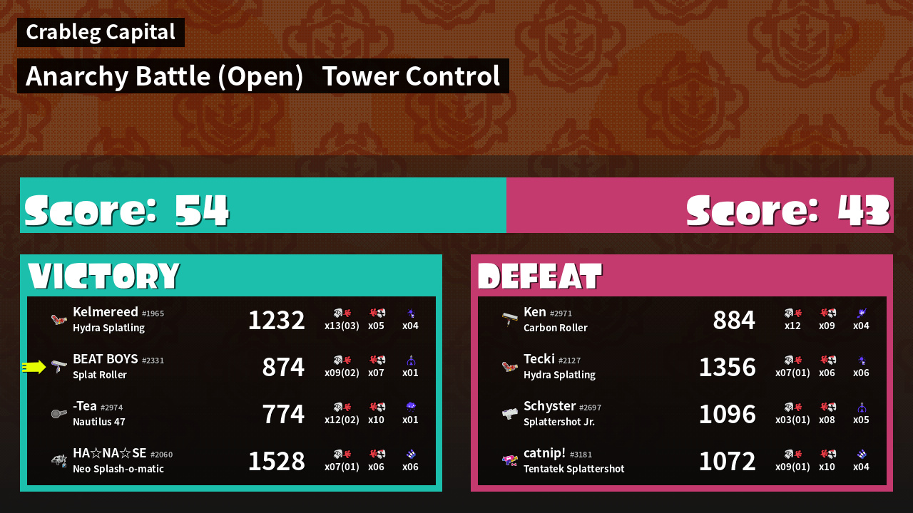 | Mode | Tower Control - Anarchy Battle (Open) | ||