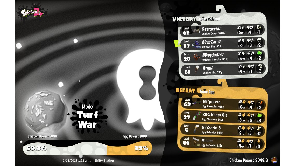 | Name | Weapon | Level | Points | k+a/sp | k/d |