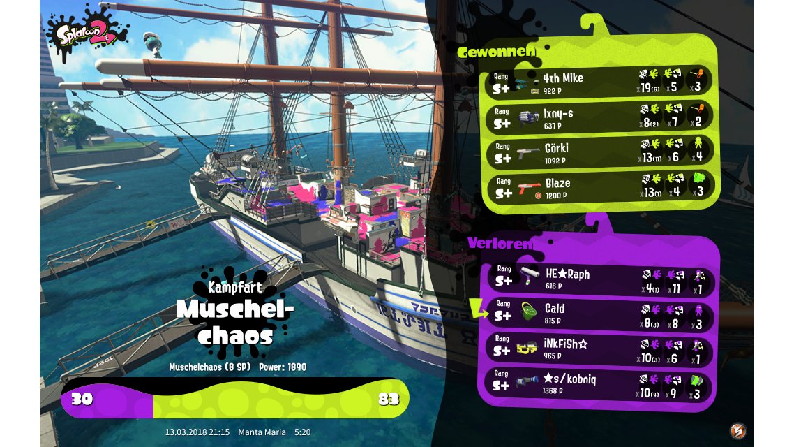 | Name | Weapon | Level | Rank | Inked | k+a/sp | k/d |