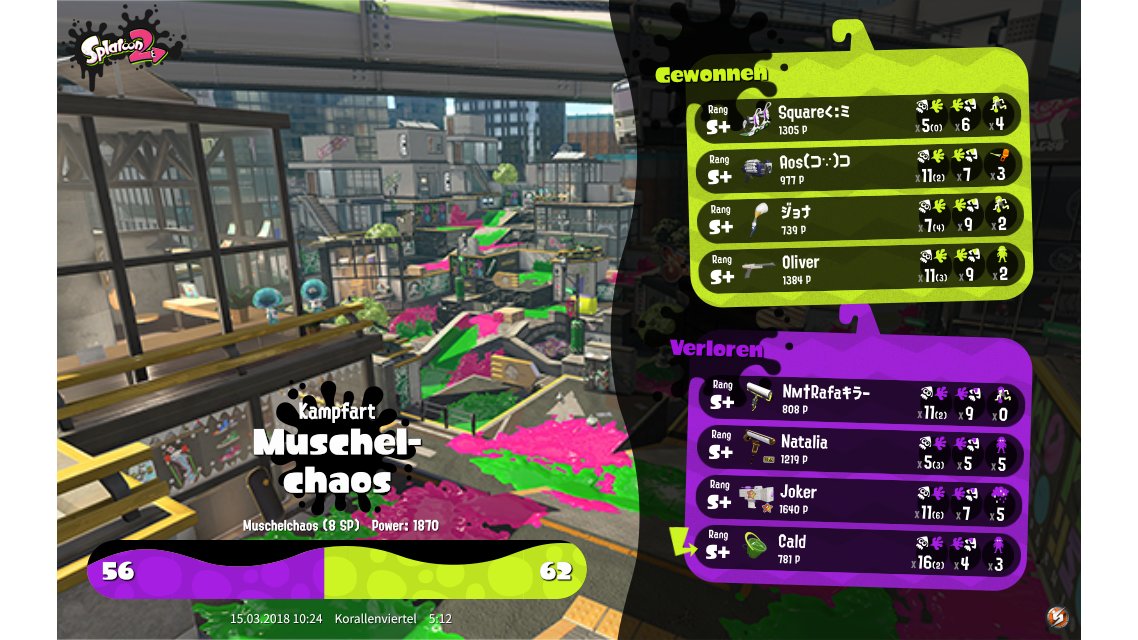 | Name | Weapon | Level | Rank | Inked | k+a/sp | k/d |
