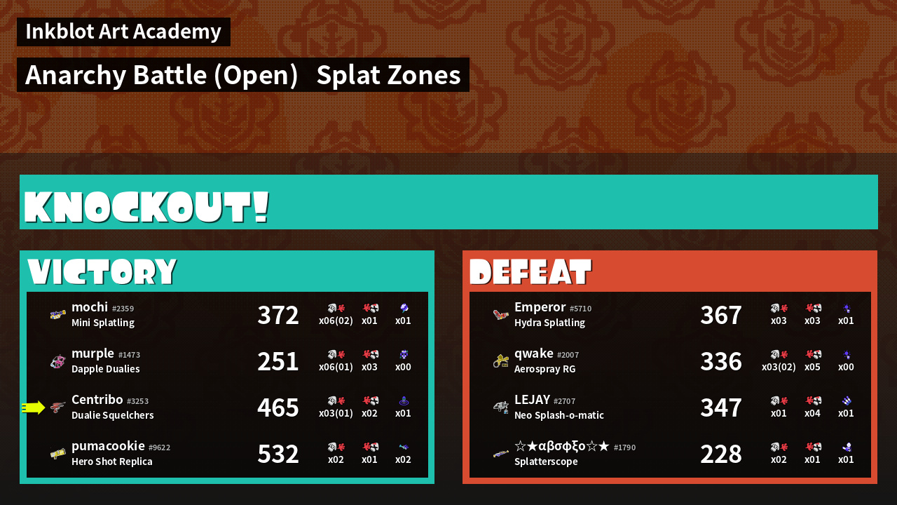 | Mode | Splat Zones - Anarchy Battle (Open) | ||