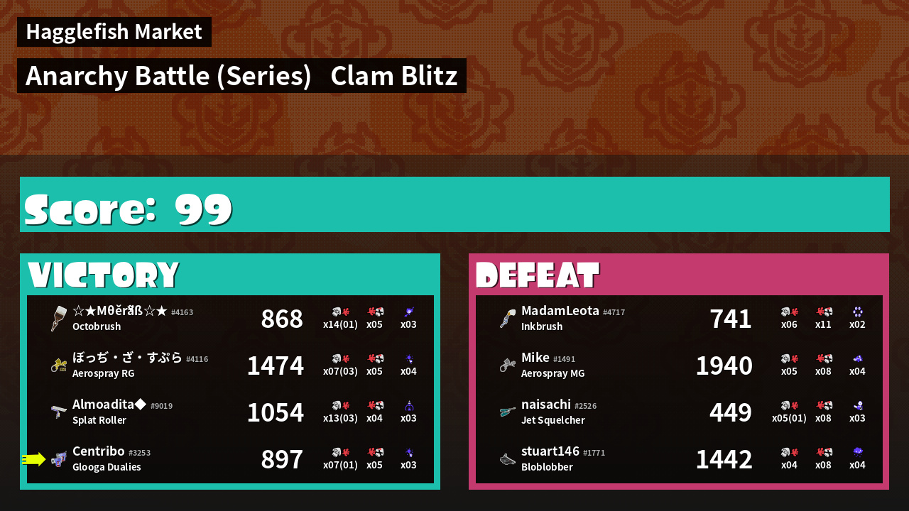 | Mode | Clam Blitz - Anarchy Battle (Series) | ||