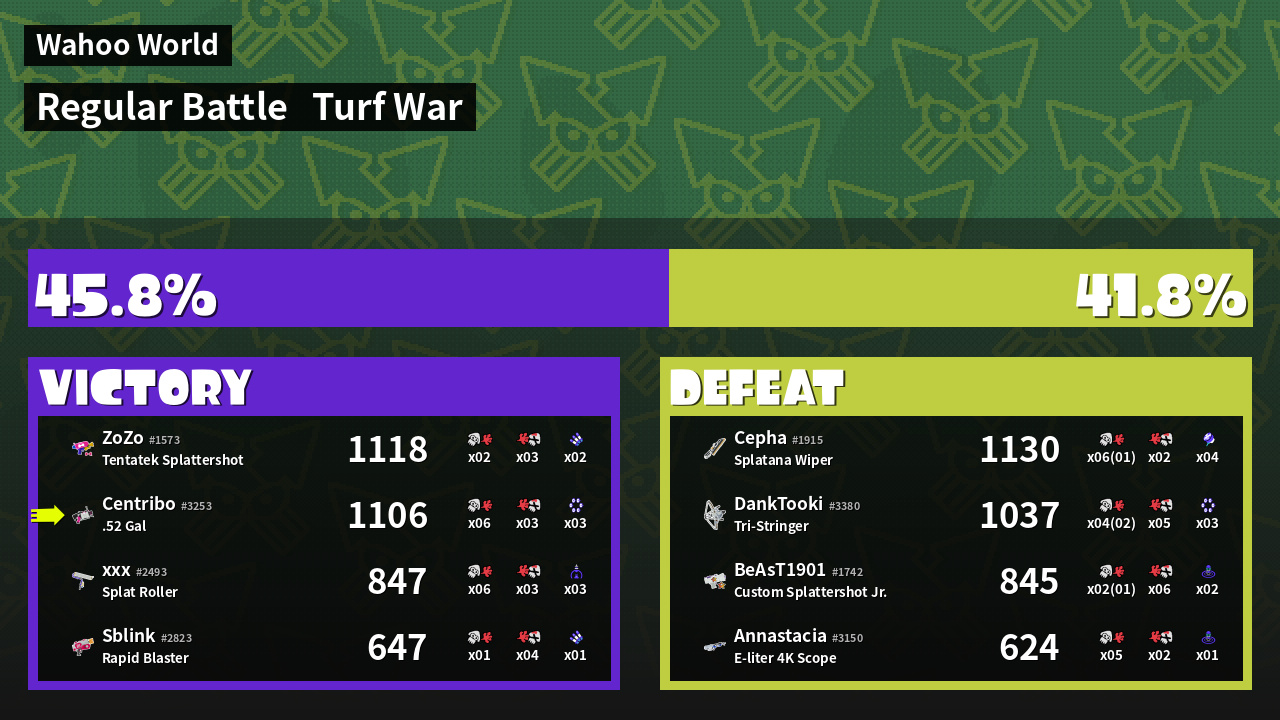 | Medals | #1 Overall Splatter #1 Popular Target #1 Enemy-Base Inker | ||