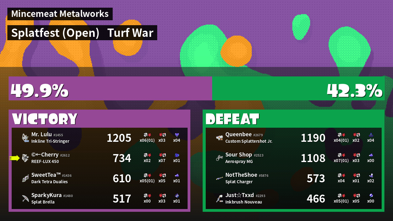 | Medals | #1 Ground Traveler First Splat! #1 Tenta Missiles User | ||