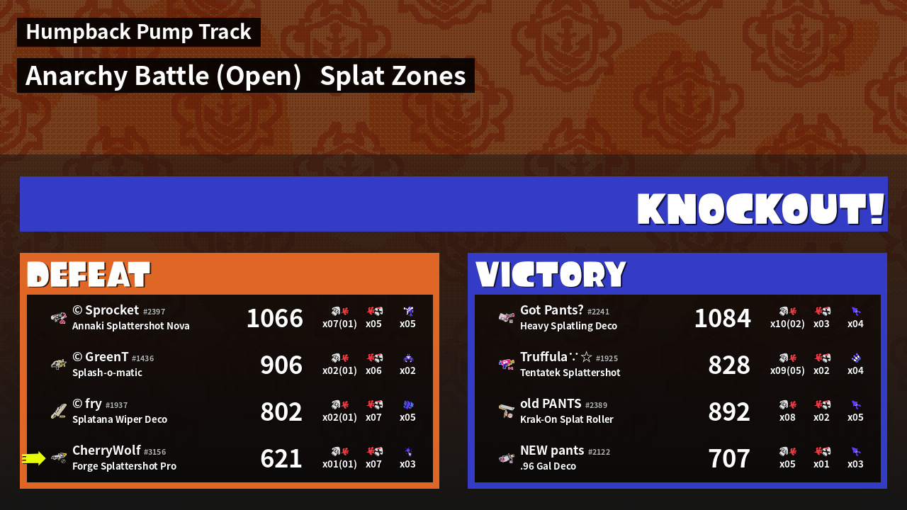 | Mode | Splat Zones - Anarchy Battle (Open) | ||
