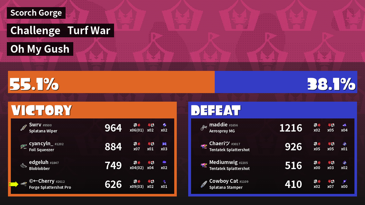 | Medals | #1 Overall Splatter #1 Super Jump Spot #1 Splat Assister | ||
