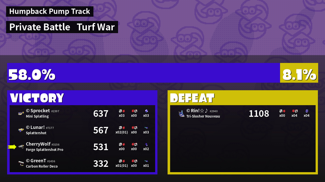 | Mode | Turf War - Private Battle | ||