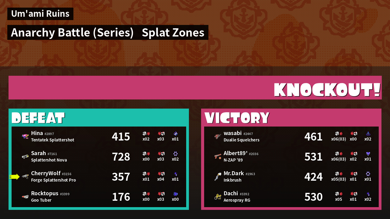 | Mode | Splat Zones - Anarchy Battle (Series) | ||