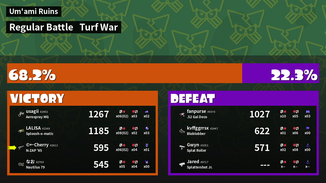 | Medals | #1 Super Jump Spot #1 Splat Assister #1 Ink Consumer | ||