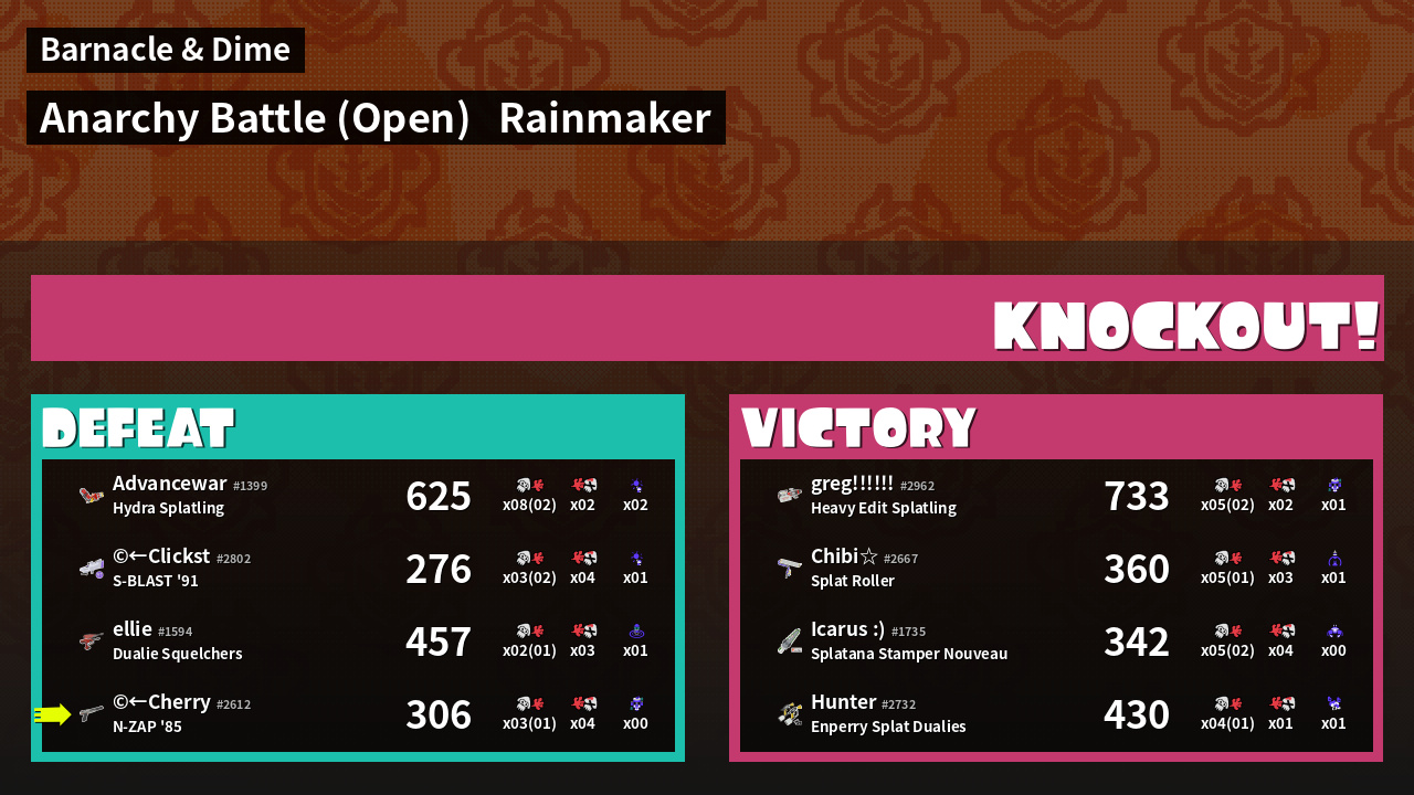 | Mode | Rainmaker - Anarchy Battle (Open) | ||