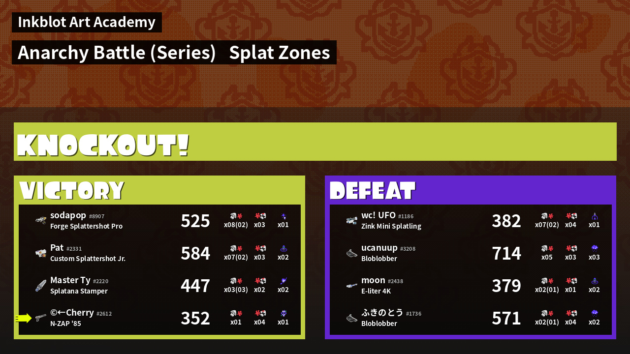 | Mode | Splat Zones - Anarchy Battle (Series) | ||