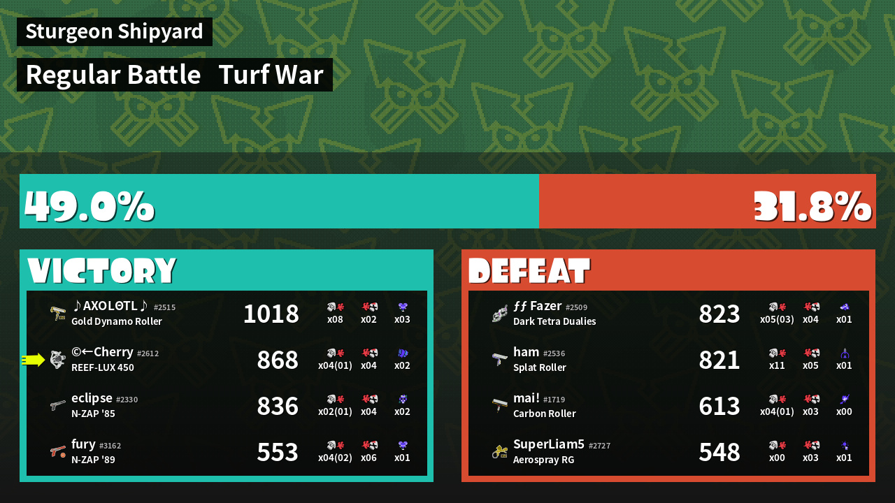 | Mode | Turf War - Regular Battle | ||