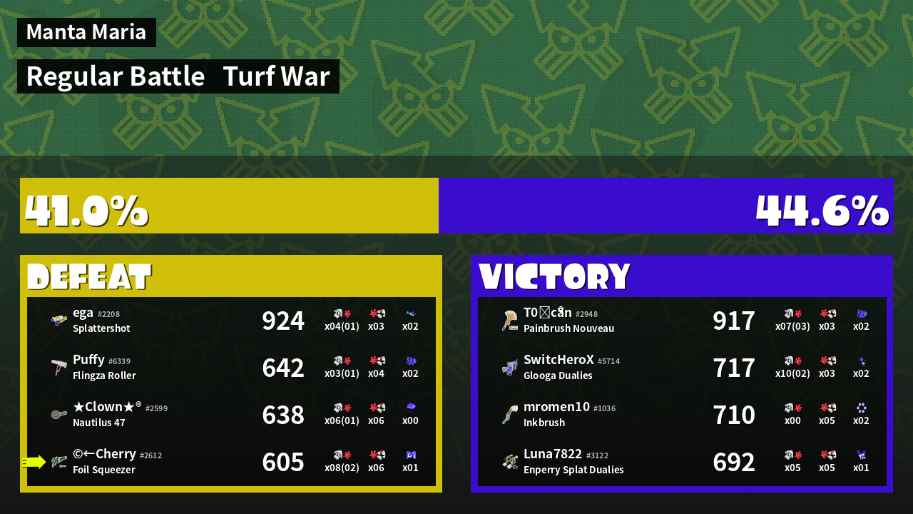 | Mode | Turf War - Regular Battle | ||