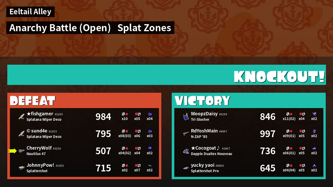 | Mode | Splat Zones - Anarchy Battle (Open) | ||