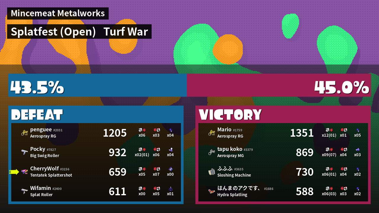 | Medals | #1 Ground Traveler #1 Ink Consumer #2 Overall Splatter | ||