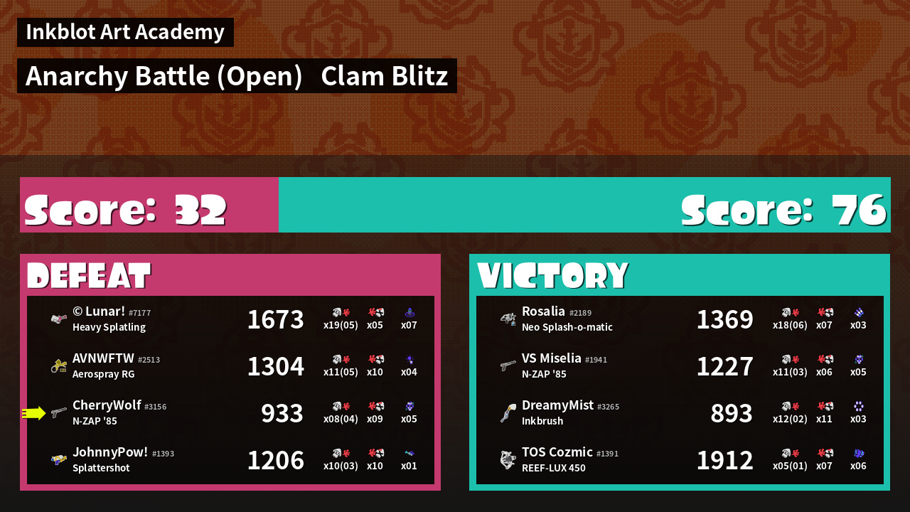 | Mode | Clam Blitz - Anarchy Battle (Open) | ||