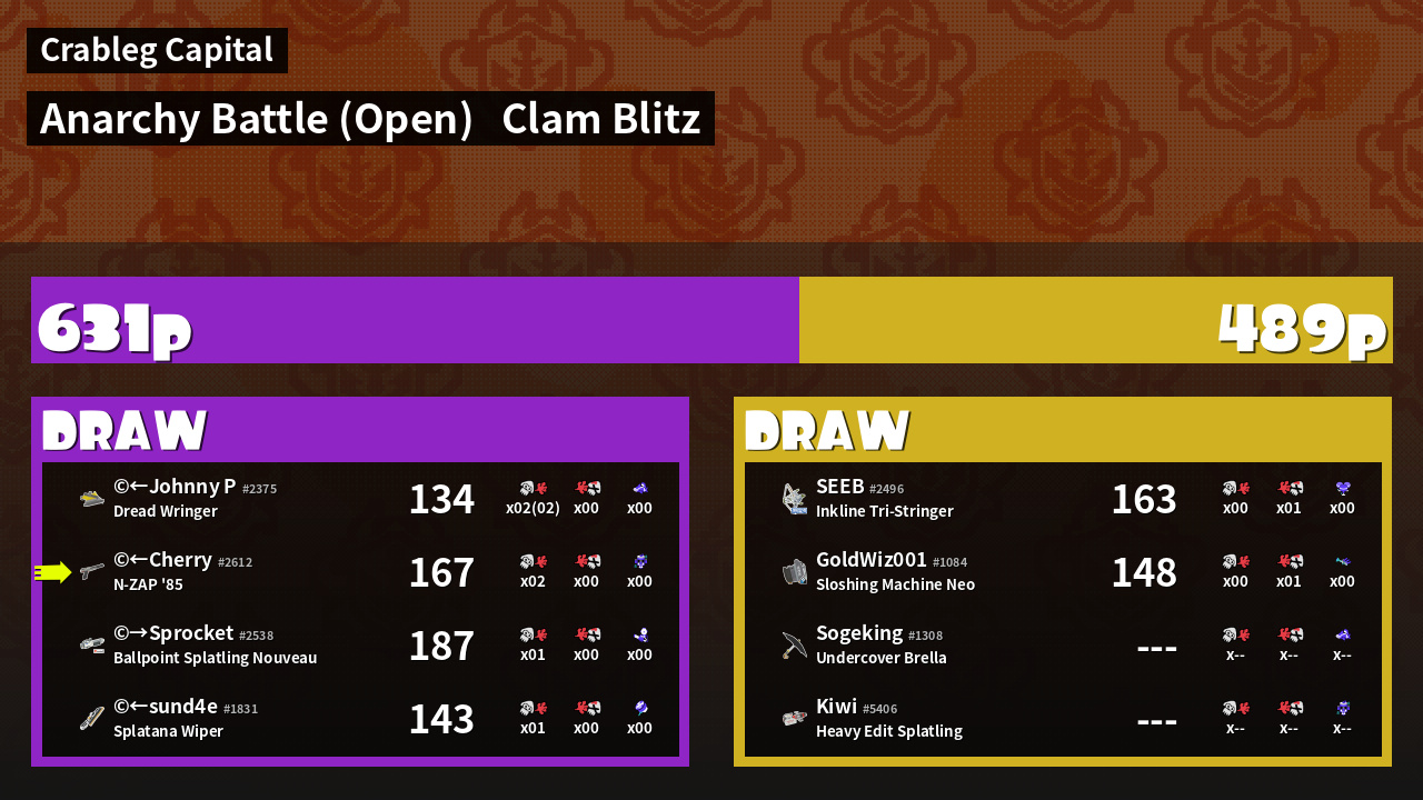 | Mode | Clam Blitz - Anarchy Battle (Open) | ||