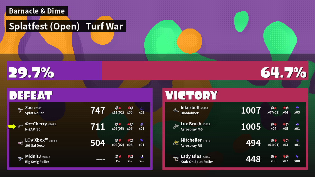 | Mode | Turf War - Splatfest (Open) | ||