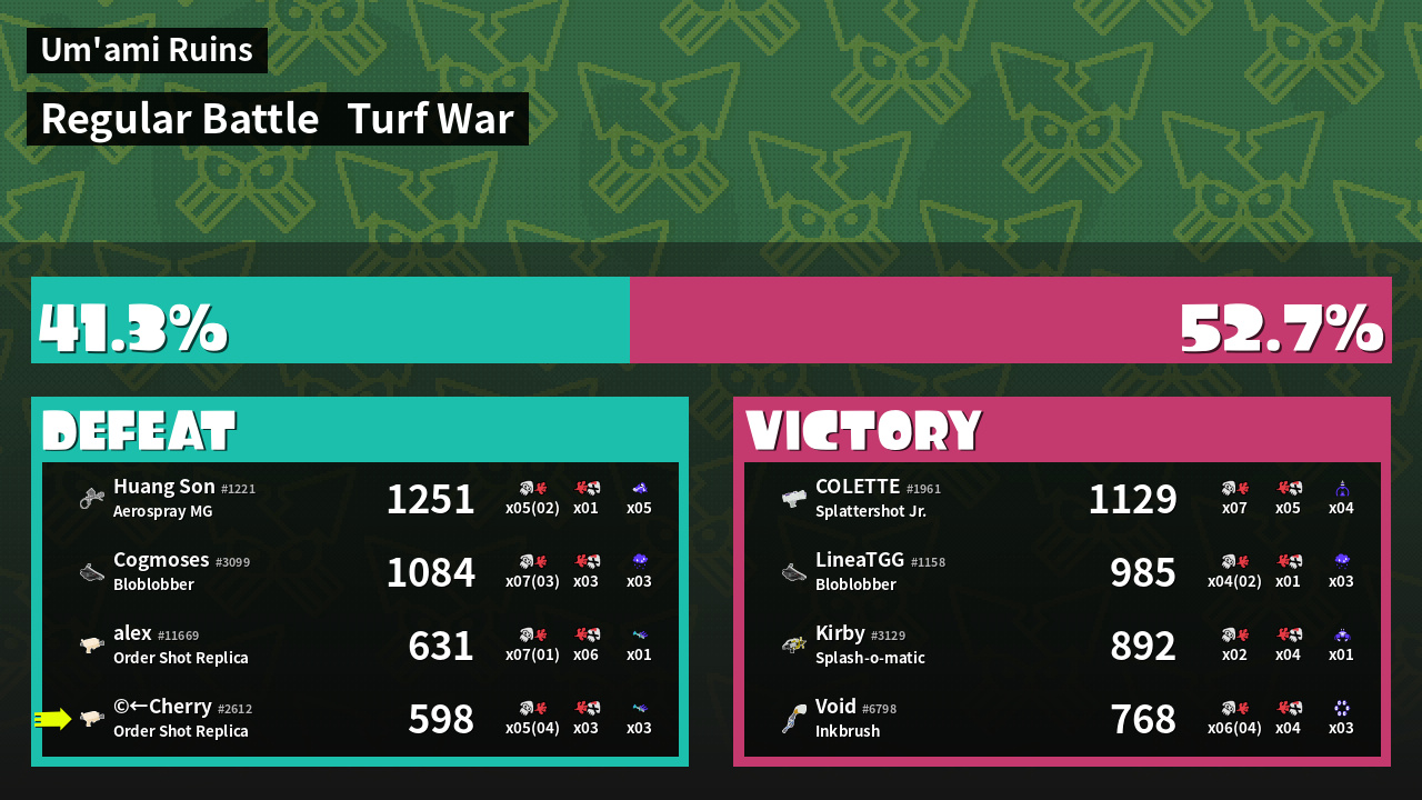 | Medals | #1 Super Jump Spot #1 Splat Assister #1 Damage Taker | ||