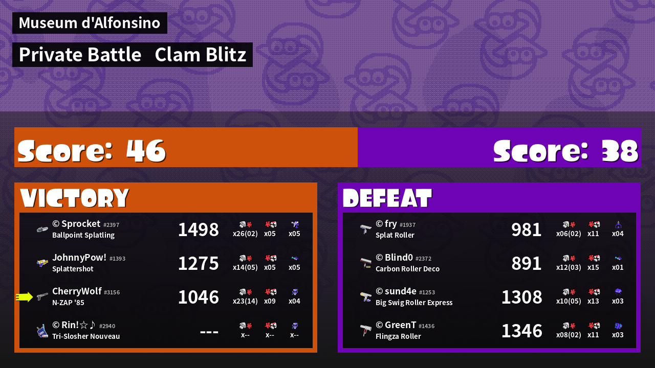 | Mode | Clam Blitz - Private Battle | ||