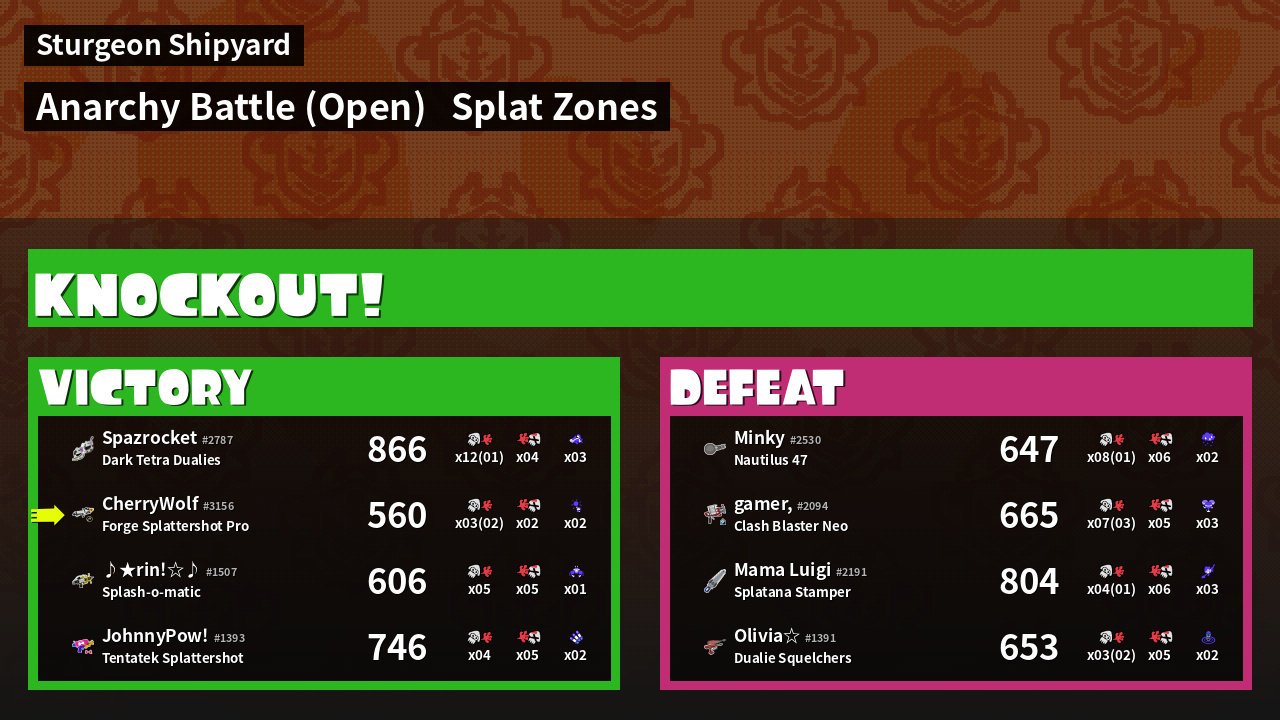| Mode | Splat Zones - Anarchy Battle (Open) | ||