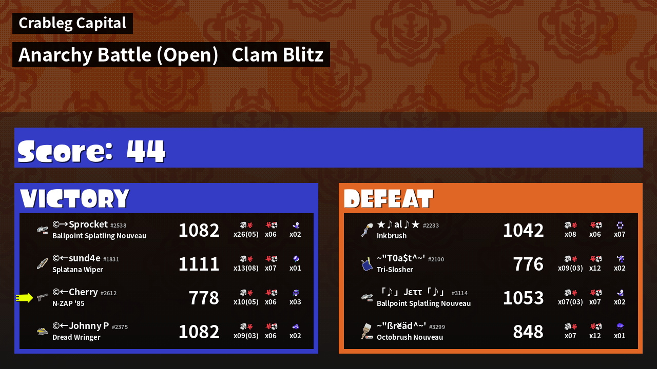 | Mode | Clam Blitz - Anarchy Battle (Open) | ||