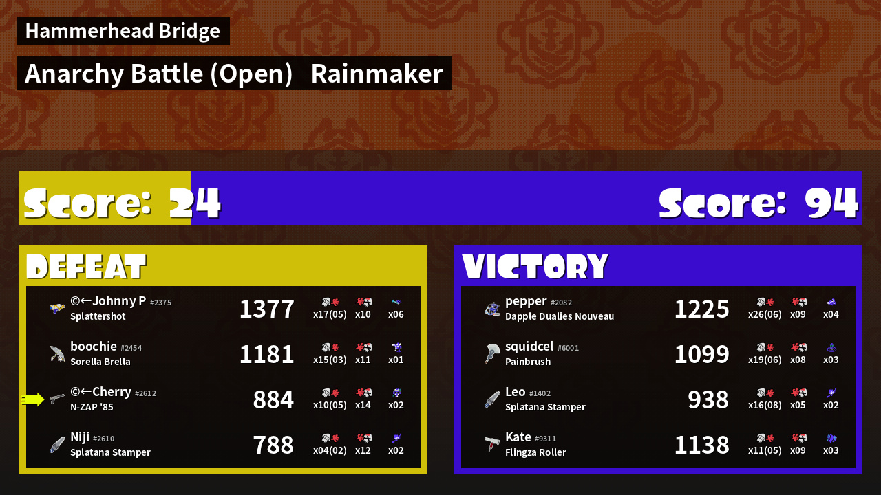 | Mode | Rainmaker - Anarchy Battle (Open) | ||