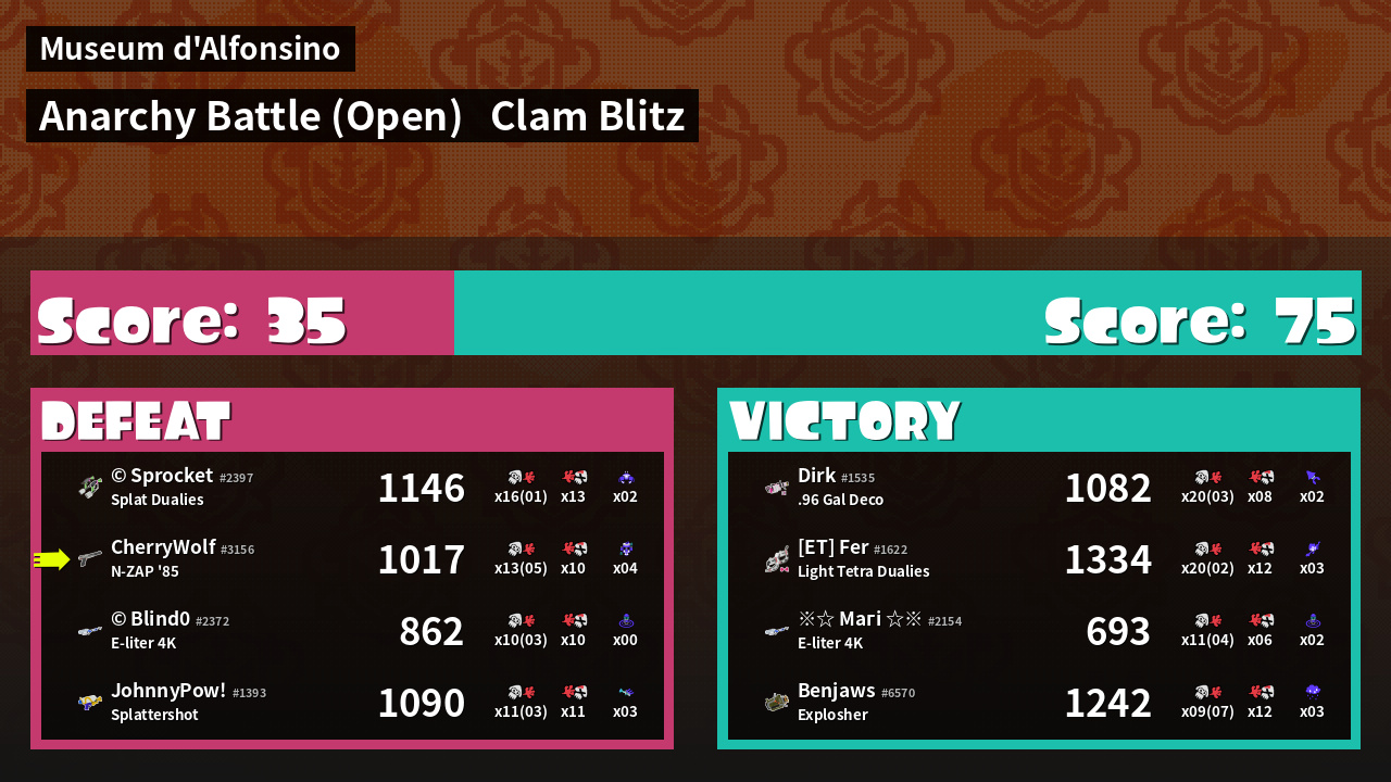| Mode | Clam Blitz - Anarchy Battle (Open) | ||