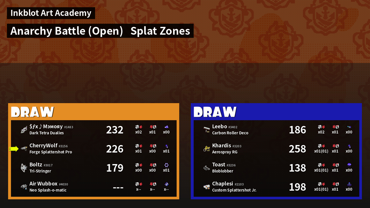 | Mode | Splat Zones - Anarchy Battle (Open) | ||