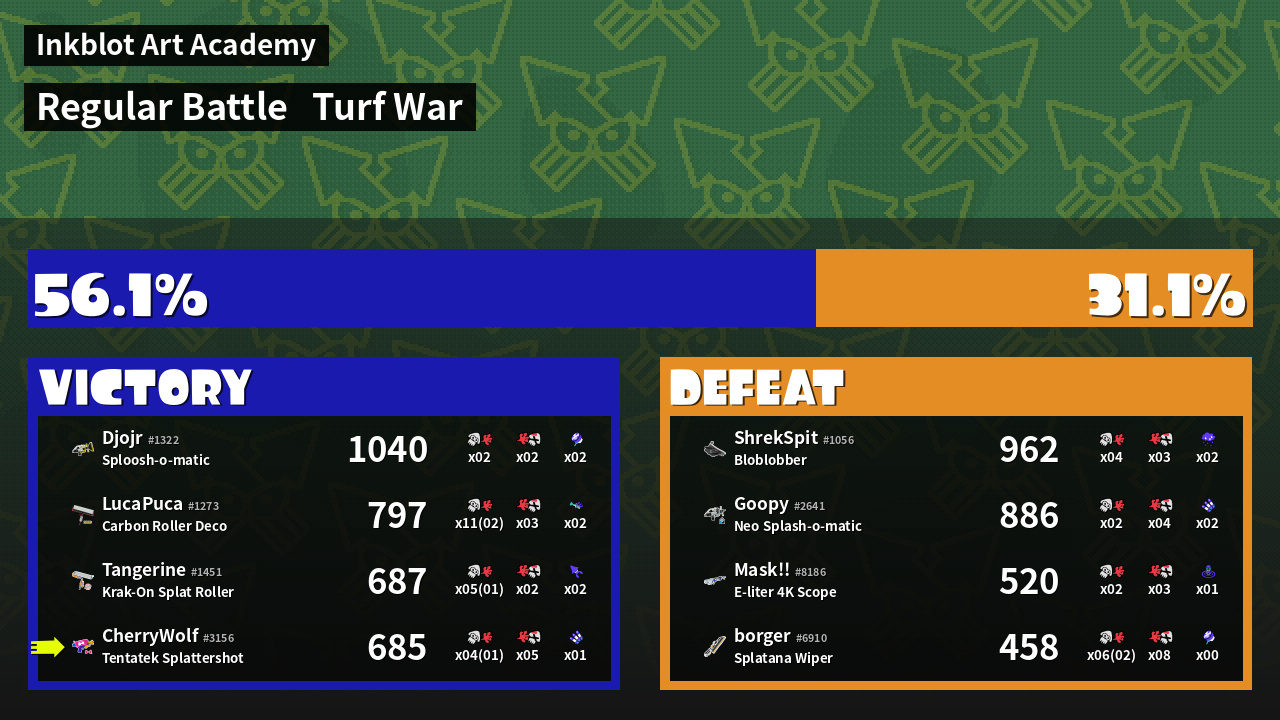 | Mode | Turf War - Regular Battle | ||