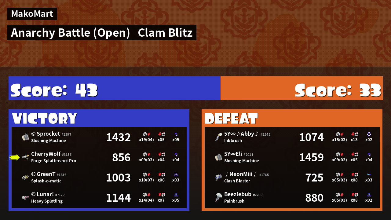 | Mode | Clam Blitz - Anarchy Battle (Open) | ||