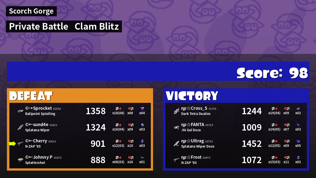| Mode | Clam Blitz - Private Battle | ||