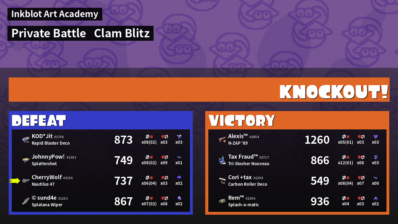 | Medals | #1 Popular Target #1 Splat Assister #2 Clam Carrier | ||