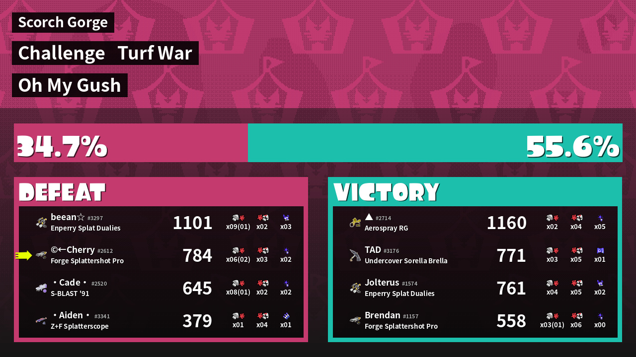 | Medals | #1 Splat Assister First Splat! #2 Turf Inker | ||