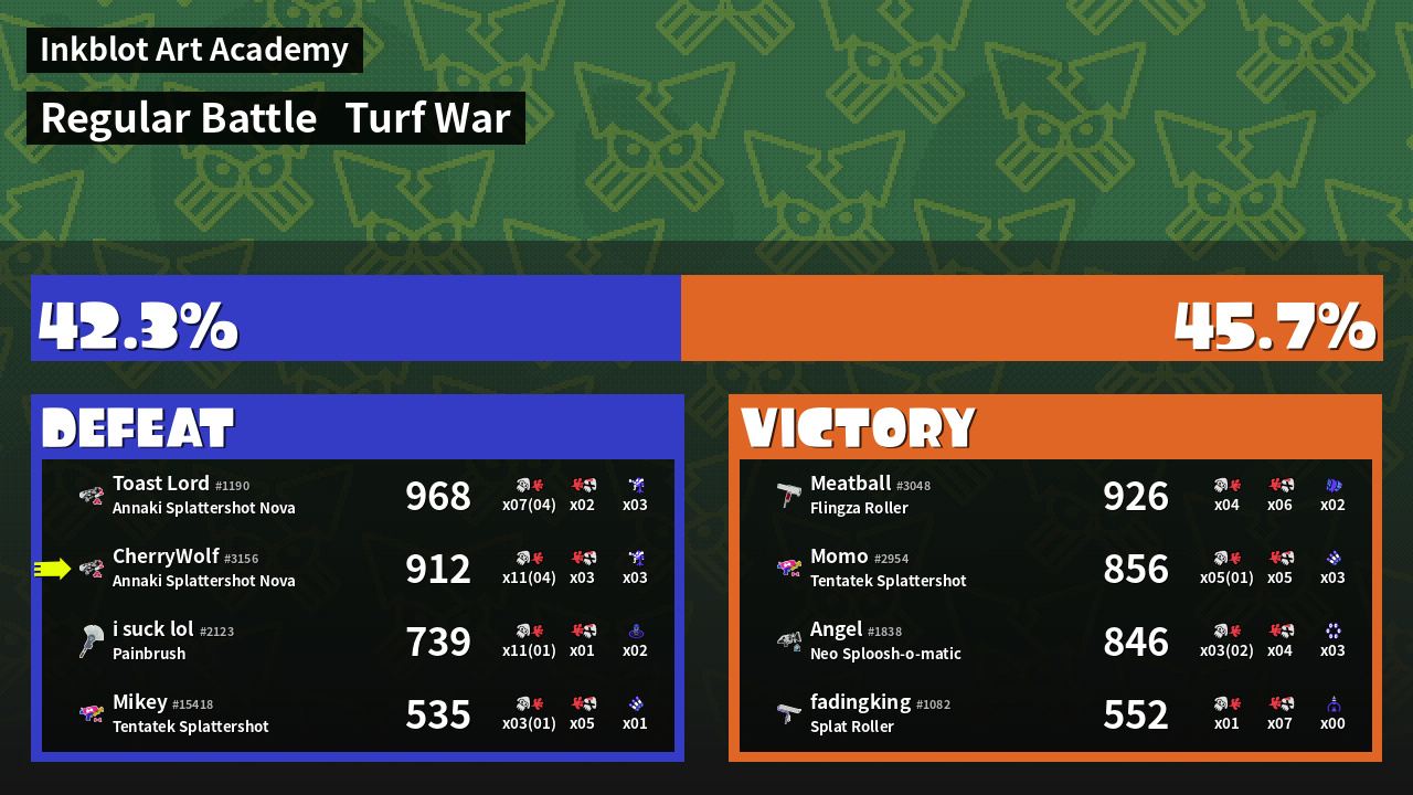 | Mode | Turf War - Regular Battle | ||