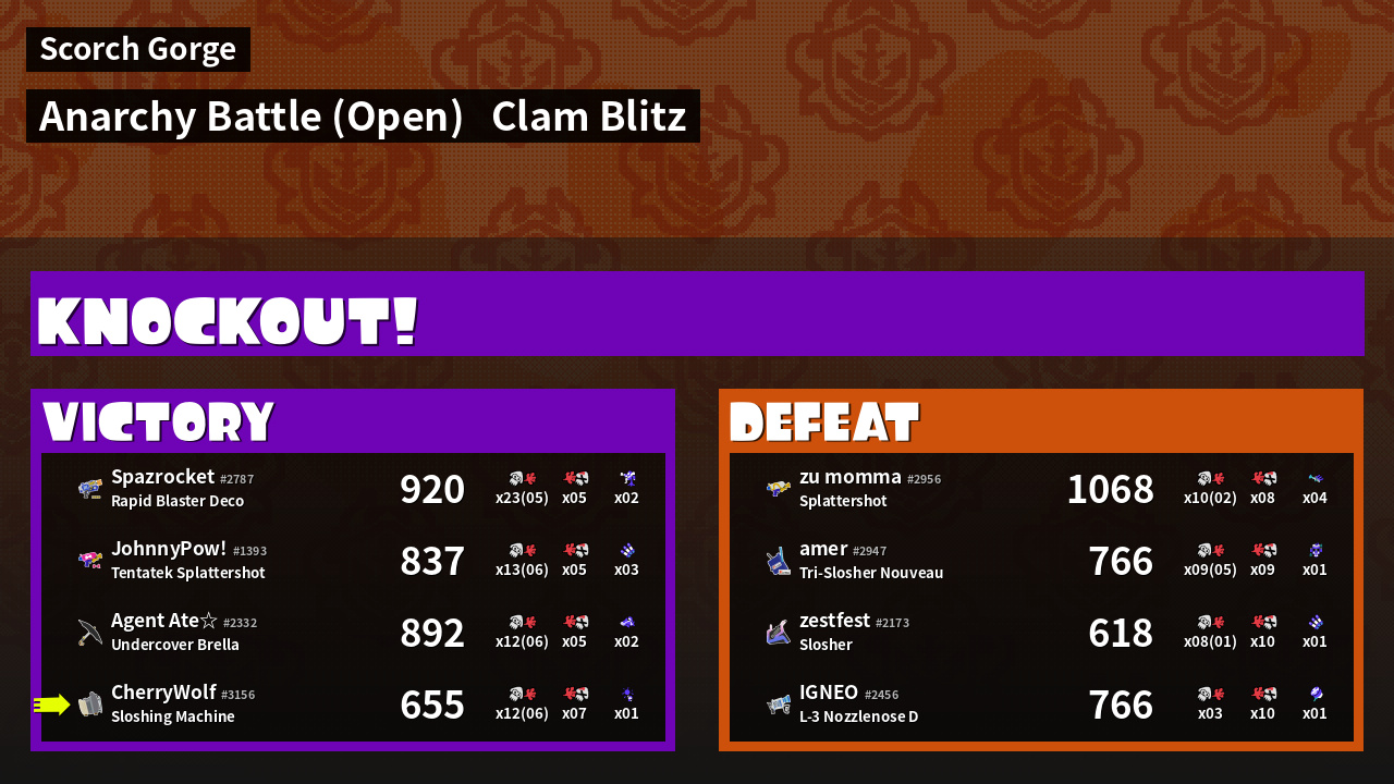 | Mode | Clam Blitz - Anarchy Battle (Open) | ||