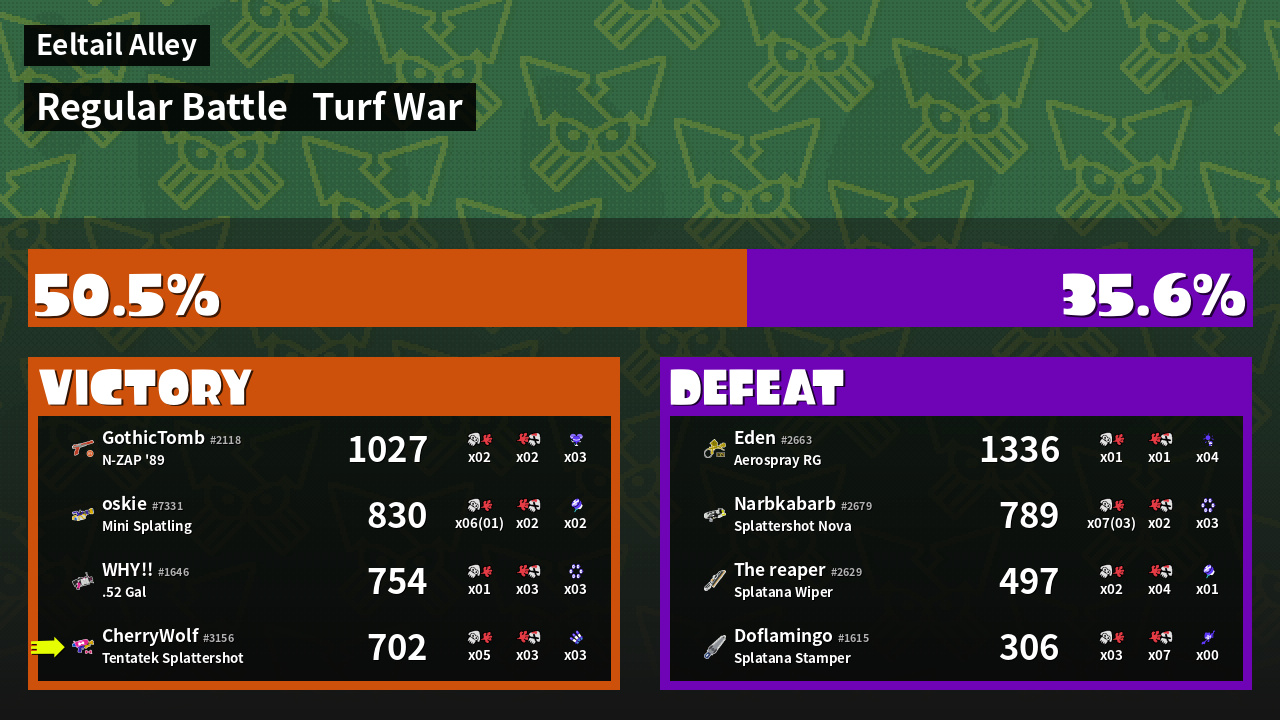 | Mode | Turf War - Regular Battle | ||