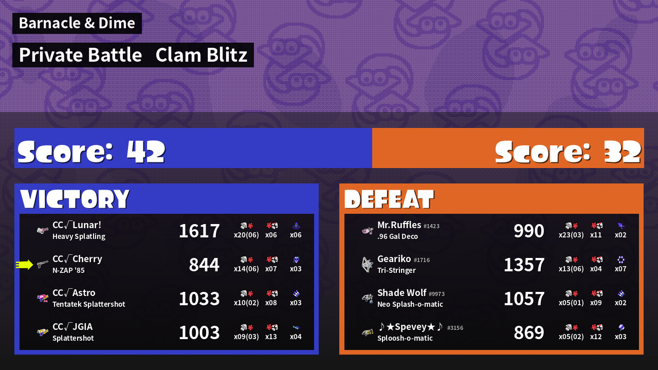 | Medals | #1 Score Booster #1 Clam Carrier #1 Popular Target | ||