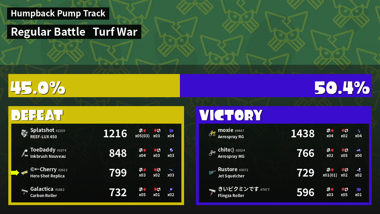 | Mode | Turf War - Regular Battle | ||