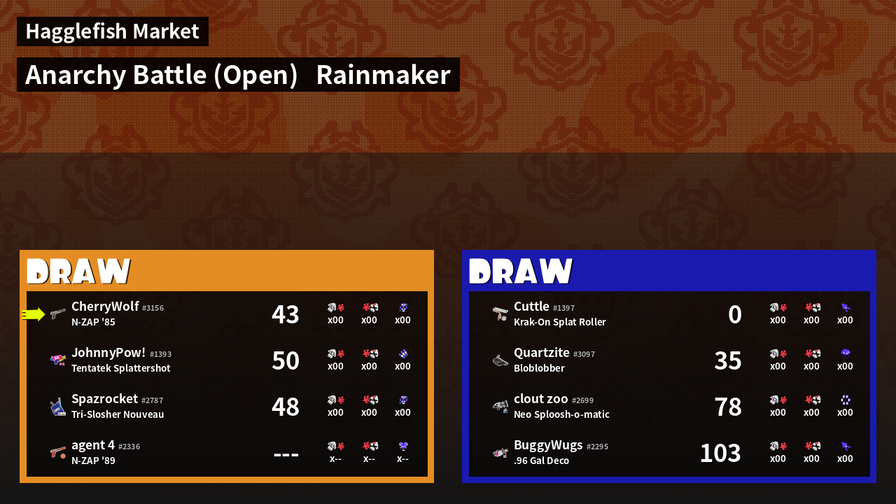 | Mode | Rainmaker - Anarchy Battle (Open) | ||