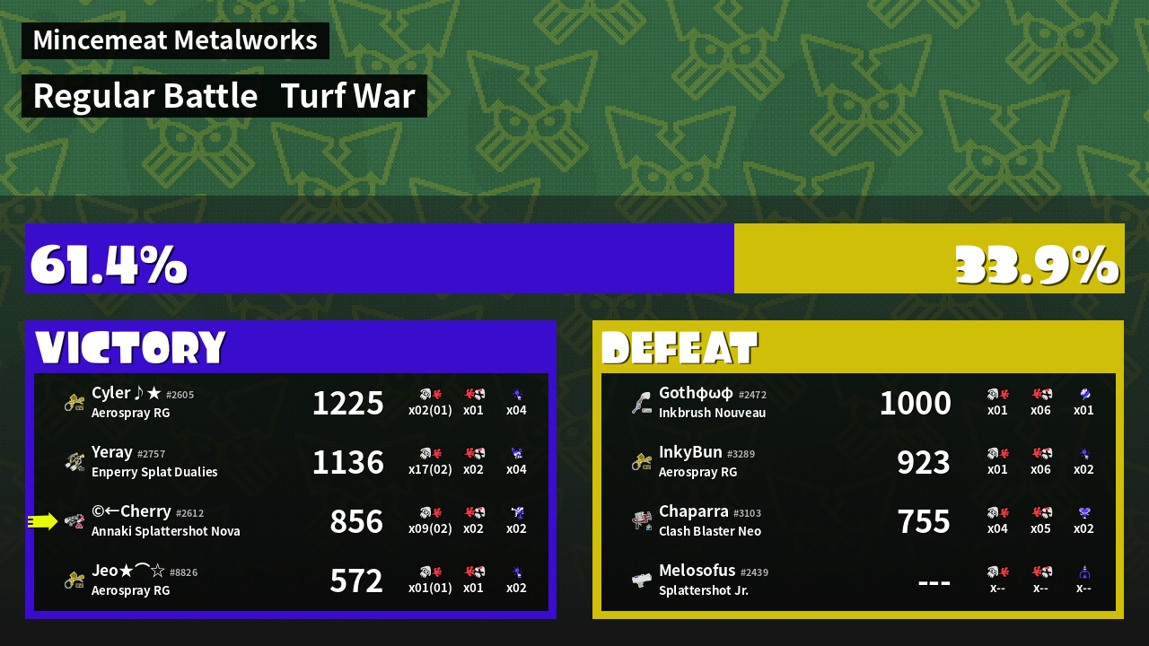 | Medals | #1 Splat Assister #1 Base Defender #2 Overall Splatter | ||