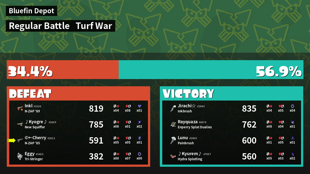 | Mode | Turf War - Regular Battle | ||