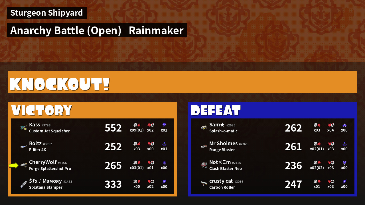 | Mode | Rainmaker - Anarchy Battle (Open) | ||