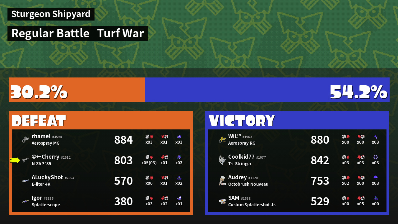 | Medals | #1 Overall Splatter #1 Home-Base Inker #1 Splat Assister | ||