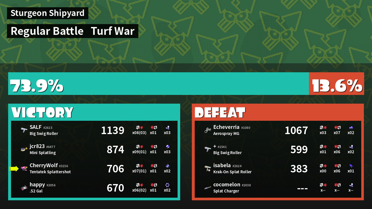 | Mode | Turf War - Regular Battle | ||