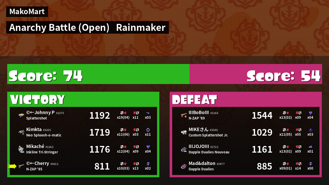 | Mode | Rainmaker - Anarchy Battle (Open) | ||